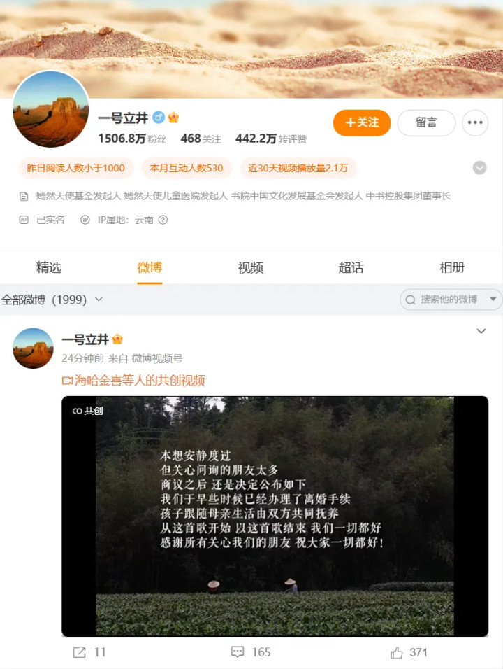 本想安静度过,但关心问询的朋友太多,商议之后还是决定公布如下,我们已于早些时候已经办理了离婚手续,孩子跟随母亲生活由双方共同抚养,从这首歌开始,以这首歌结束,我们一切都好,感谢所有关心我们的朋友,祝大家一切都好!