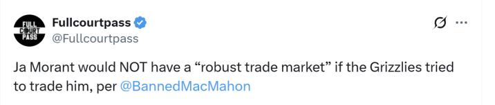 ESPN: 若灰熊决定交易莫兰特, 他不会有活跃的交易市场