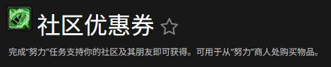 例如下图这个例子,社区完成任务后,商人专属的奖励就会解锁,社区进度条不够,商品是红色无法购买,但是就算解锁了,仍需要玩家自己拿优惠卷购买